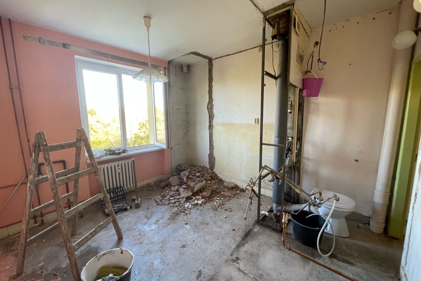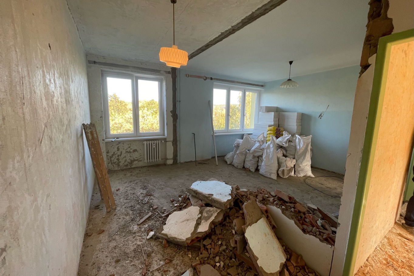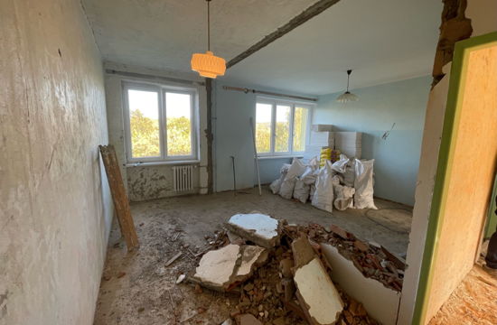Jedná se o rekonstrukci bytu s dispozicí 3+1 ve zděném bytovém domě z 60. let minulého století v Chomutově. Byt byl v původním stavu, majitelé v něm v uplynulých letech provedli jen pár oprav podlah, výmalby a pověsili několik nových obrázků na zdi. Rekonstrukce spočívala ve vybourání umakartového jádra (koupelny a toalety), zbourání příčky a vyzdění nové příčky a zvětšení koupelny a toalety směrem do chodby. Zásadními body rekonstrukce pak byly kompletně nová elektroinstalace, odpady, VZT, obklady, podlahy, nové SDK stropy a vyspravení omítek. Došlo také k úpravě rozvodů vytápění, stoupaček, odtahu z kuchyně, koupelny a toalety, vyrovnání podlah do jedné úrovně a srovnání nerovností všech původních zdí.