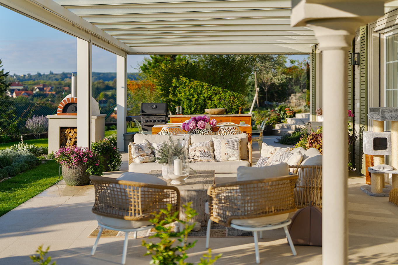 Interiér je doplněn z velké části starožitným nábytkem s prvky romantického francouzského stylu Provence, který podtrhuje atmosféru domu a propojuje současné technické vybavení s respektem ke konvenci. Celek završuje rozsáhlá zahrada, navržená jako místo pro dokonalý odpočinek.